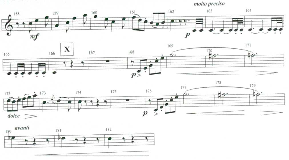 Takt 157 ist ein Punkt, wo viele Solisten mit dem Orchester Schwierigkeiten haben, da die Koordinierung problematisch werden kann, wenn der Solist nicht unbedingt im rhythmischen Fluss bleibt. Wenn Du neben dem Daumenventil nur das erste Ventil zum Einsatz kommt, das schnellere der Ventile. Die Zweiunddreissigstel b als Auftakte sollten als solche ausgeführt werden, jedoch zur besseren Verständlichkeit mit T1. Denke daran, dass die letzte Folge in T.164 anders ist. Hier sind es nur Sechzehntel. Klingt wie Diesel, ha, ha ! Nun haben wir fast das Ende des Konzertes erreicht und es muss nicht viel mehr erklärt werden. Die jeweils letzte Note der Dreiergruppen in T.171 gut abheben. Das trägt zur Klarheit bei, genauso wie die jeweils gebundenen d2-c2 (F0-F0) und es2-f2 (T1-T0 !!) auch tun; aber das g2 hier mit T1 . Schiebe das Tempo in den Takten 179-81 etwas an, eben zu einem Kadenz-Punkt, und füge ein paar Sekunden Arpeggios rauf zum hohen f3 ein oder bleibe auf einem donnernden a1 in der Fermata (Vorsicht, bitte, es ist immer noch Mozart !), bevor Du mit dem Eingangsthema fortsetzt. Spiele die kleine Kadenz nur, wenn es Dir echt passt. |