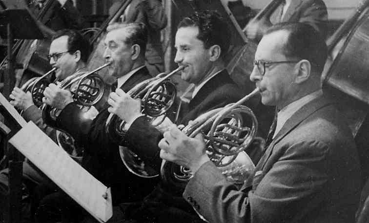 Hans Berger (studied with Karl Stiegler, Vienna Symphony 1927-8, Gewandhaus Orchestra 1928-9, Berlin State Opera 1929-45), played solo horn at the Berlin State Opera until 1944, returned to Vienna then & was the only one allowed to use the Bb-horn, full member of the VPO 1.1.1946, sharing the duties of the first horn with Gottfried von Freiberg. He retired Sept.1st, 1972. Roland Berger is his son.. Listen to his first recording of Schuberts "Auf dem Strom" op.119, recorded 1943 in Berlin, click on the name. Hans Berger (Foto links oben mit Wagnertuba) studierte bei Karl Stiegler, Solohornist der Wiener Symphoniker 1927-8, Solohornist des Gewandhausorchesters 1928-9, Solohornist der Staatsoper in Berlin 1929-45, Mitglied des Festspielorchesters in Bayreuth, Siegfriedruf in Bayreuth 1936, nach 1945 Solohornist des Orchesters der Wiener Staatsoper, Vollmitglied der Wr.Phil. ab 1.1.1946, alternierte mit Gottfried von Freiberg am Solohorn, in Pension ab 1.9.1972. Die Erstaufnahme von Schuberts "Auf dem Strom" kommt auf Klick auf den unterstrichenen Namen (Berger) oben. |
