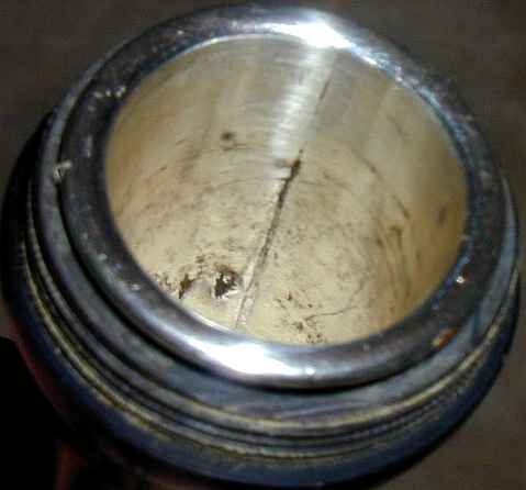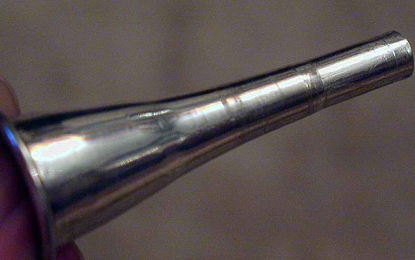 Two pictures about the mouthpieces inside, also the soldering line clearly visible | Beide Bilder zeigen deutlich die Innenseite des Mundstueckes mit der Loetnaht. |